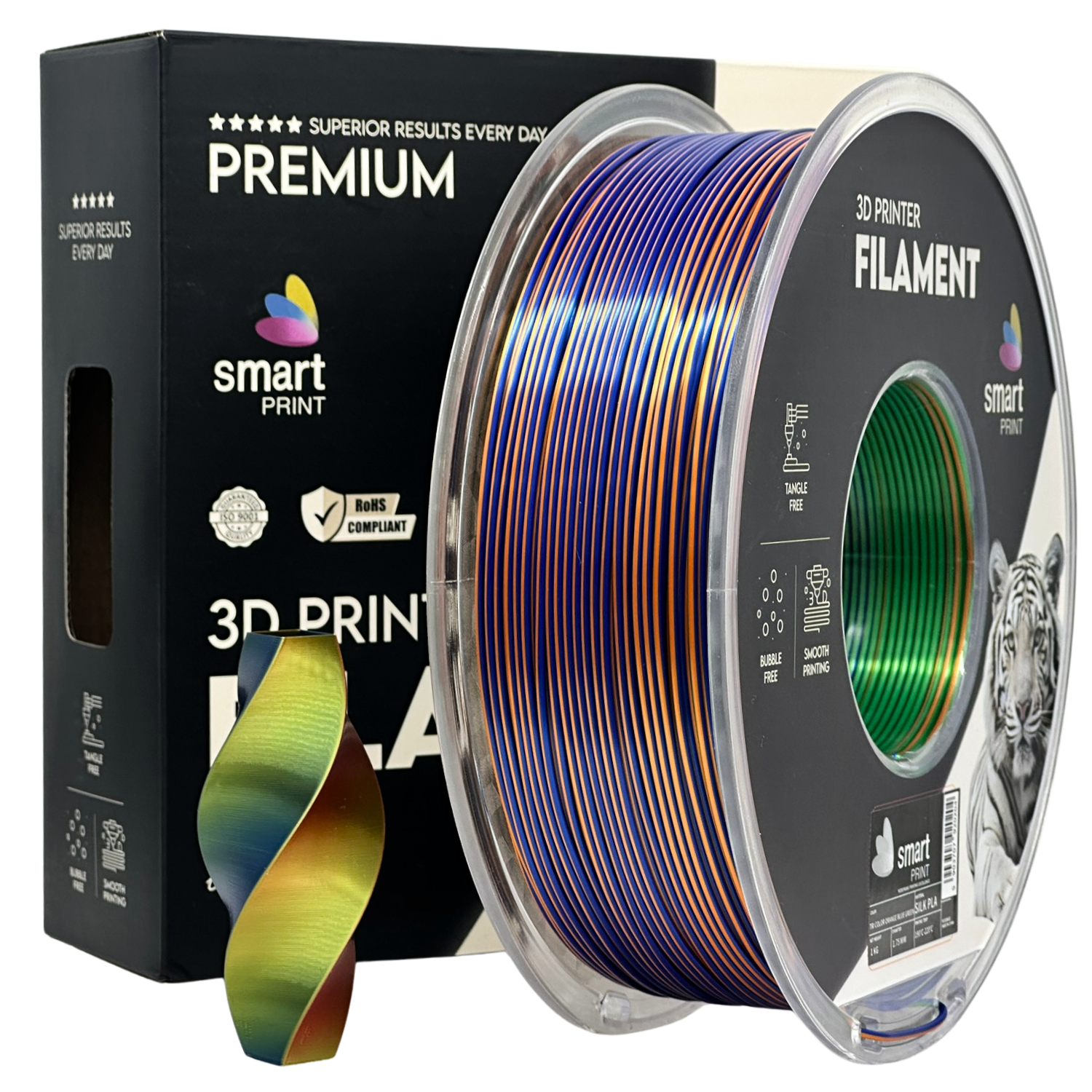 Smart Print-Tri-Color Silk PLA / 1.75mm / 1kg / Orange-Blau-Grün