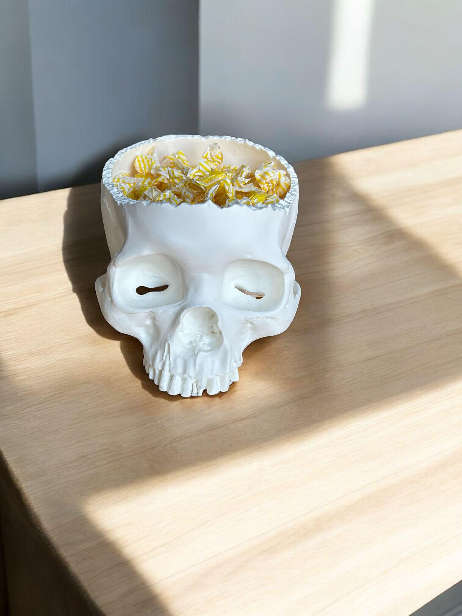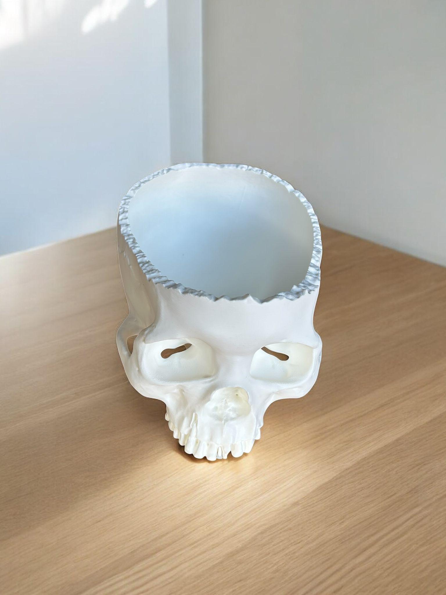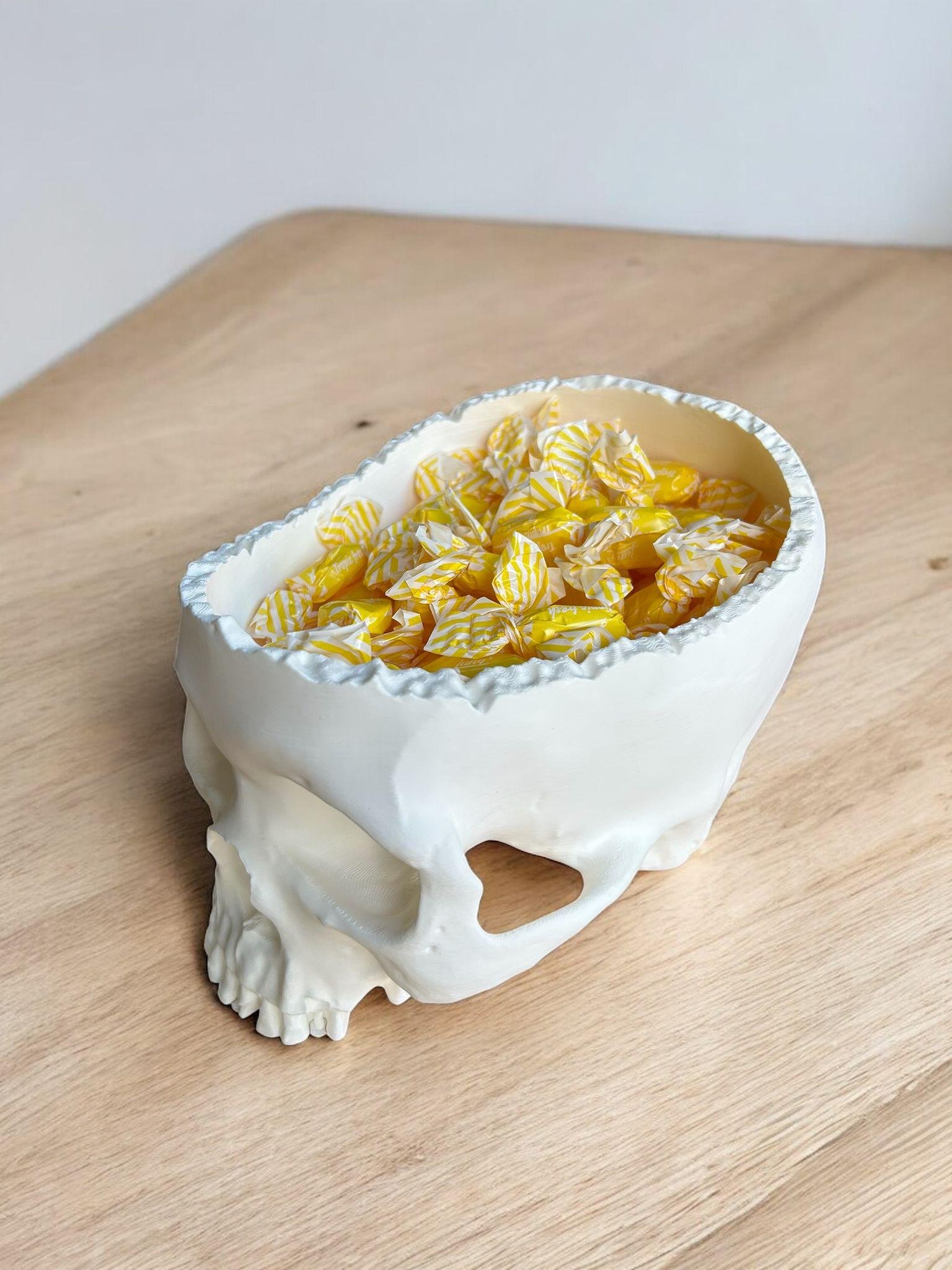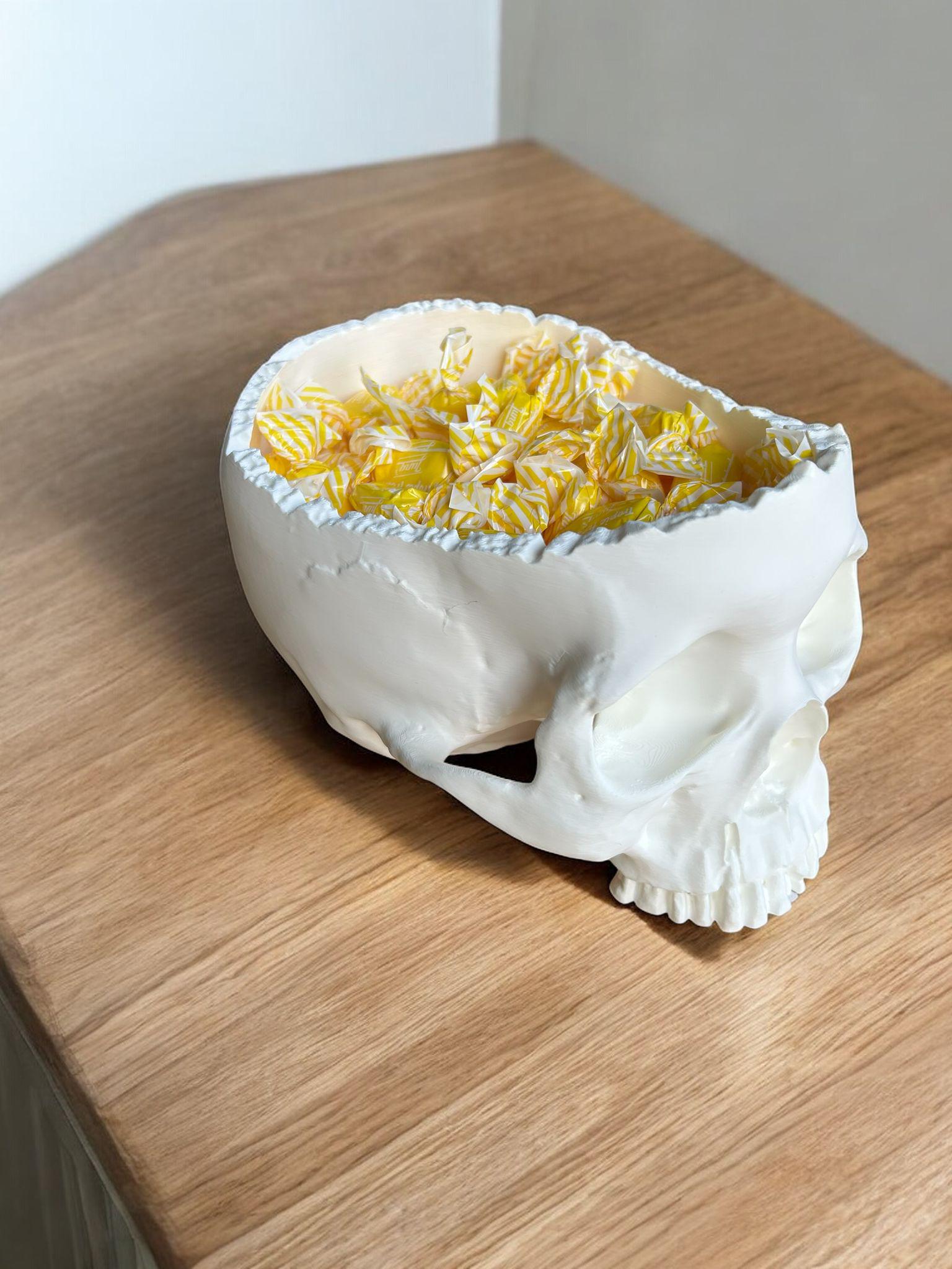 Diese außergewöhnliche Totenkopfschale ist der perfekte Blickfang für Halloween, Motto-Partys oder als stilvolle Deko im Regal. Durch den 3D-Druck entsteht ein detailreiches Design, das sowohl funktional als auch dekorativ überzeugt.